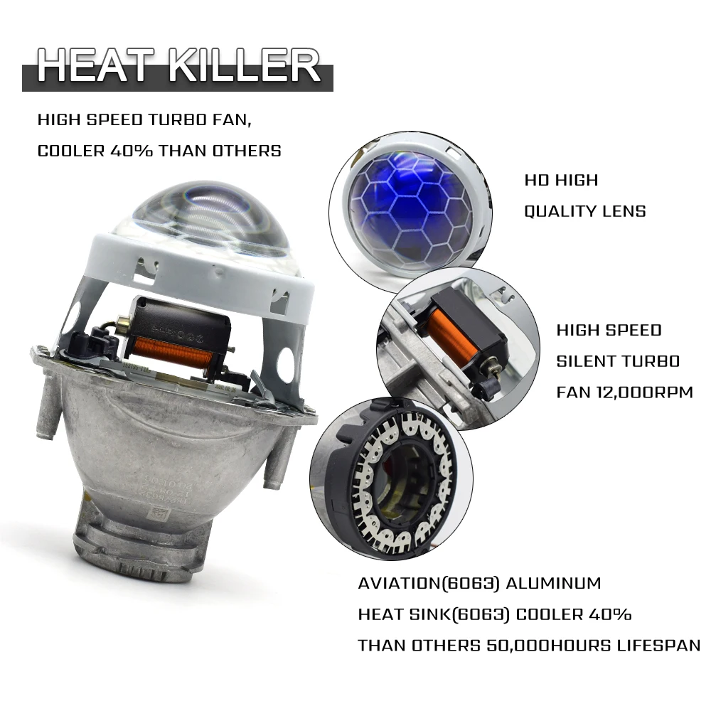 Reflector: New Upgrade Metal reflector, with better heat dissipation. Great workman ship with longer lifespan. Withstand 35W HID xenon power for more than 3000 hours without damage. 30% Brighter than other Hella projector lens.