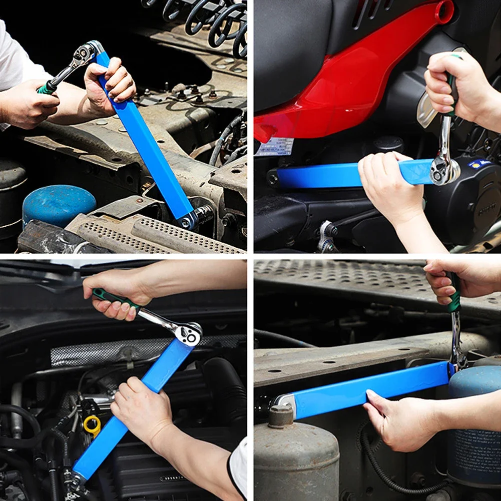 Our multifunctional extension wrench is 15.4 inches long and 0.63 inches thick, and can be used in conjunction with various ratchet wrenches.