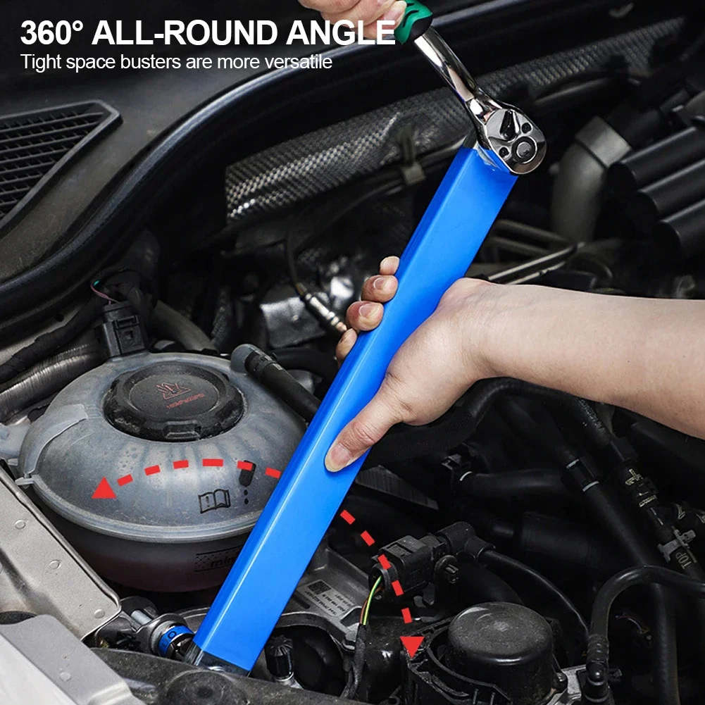 Anti impact offset extended wrench, compact extended wrench kit with 1/2 inch, 1/4 inch, and 3/8 inch square drive adapters, suitable for small space universal extended wrench