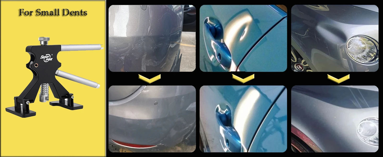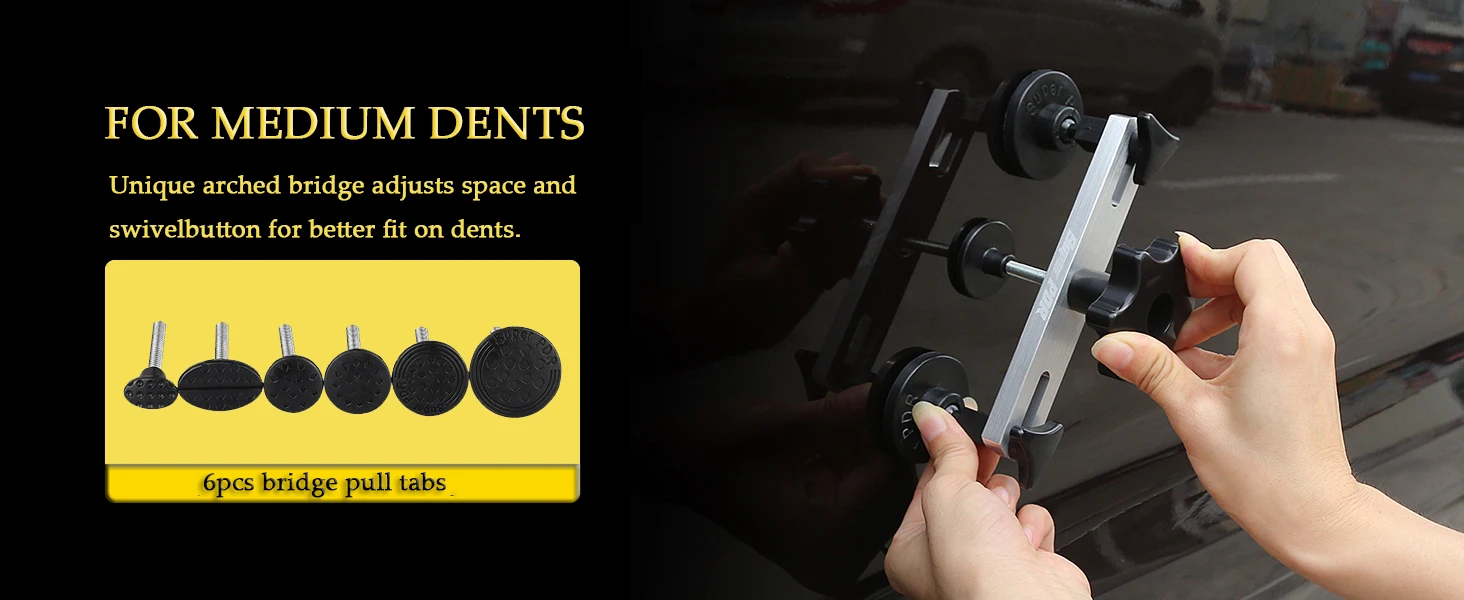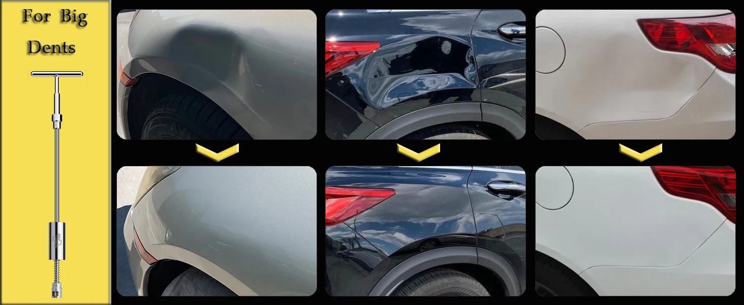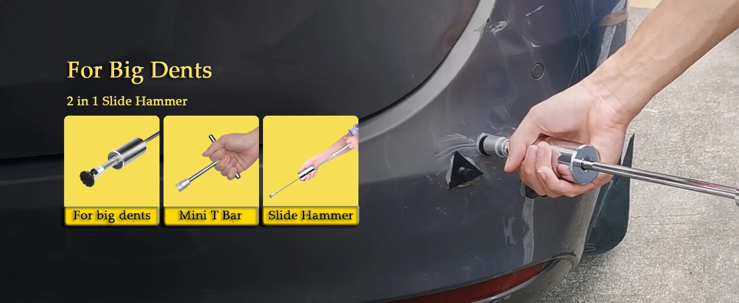 All Dents, One Kit: Fix large dents, small dings, and hail damage with specialized tools (T-puller, Dent Lifter, Bridge Puller).