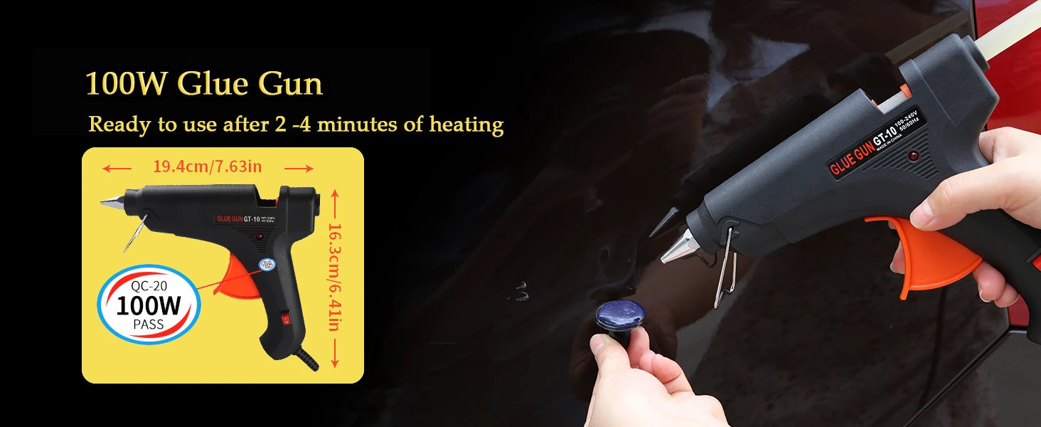 (5)100W Professional Glue Gun (CE & FCC Certified)→ 3X Faster Flow | Smoother Melts | Pro-Grade Control