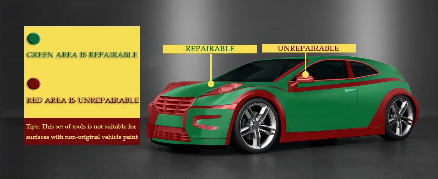 Suitable for diameter 3-10cm/1.2-4in dents, including dents caused by minor collisions, impacts or other external forces.