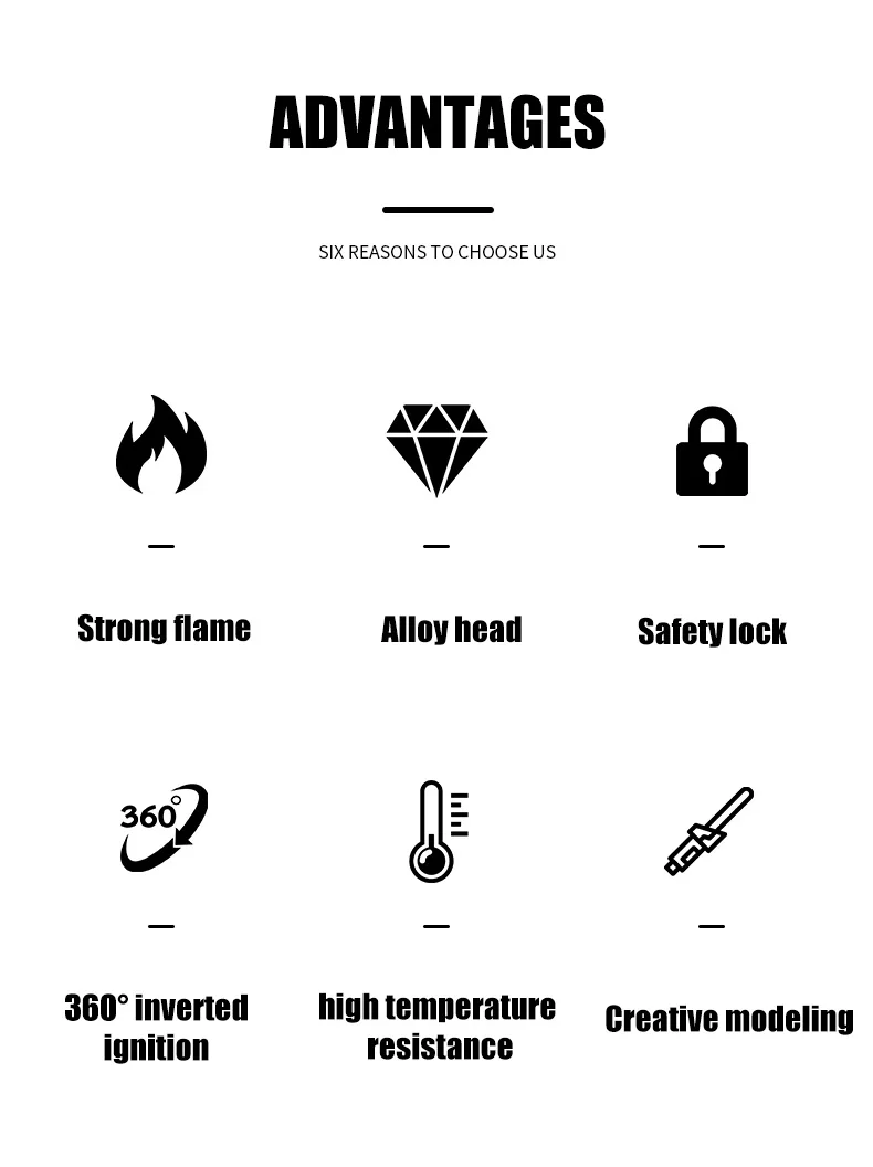 - Parfaite pour le soudage, les barbecues et les cigares.
