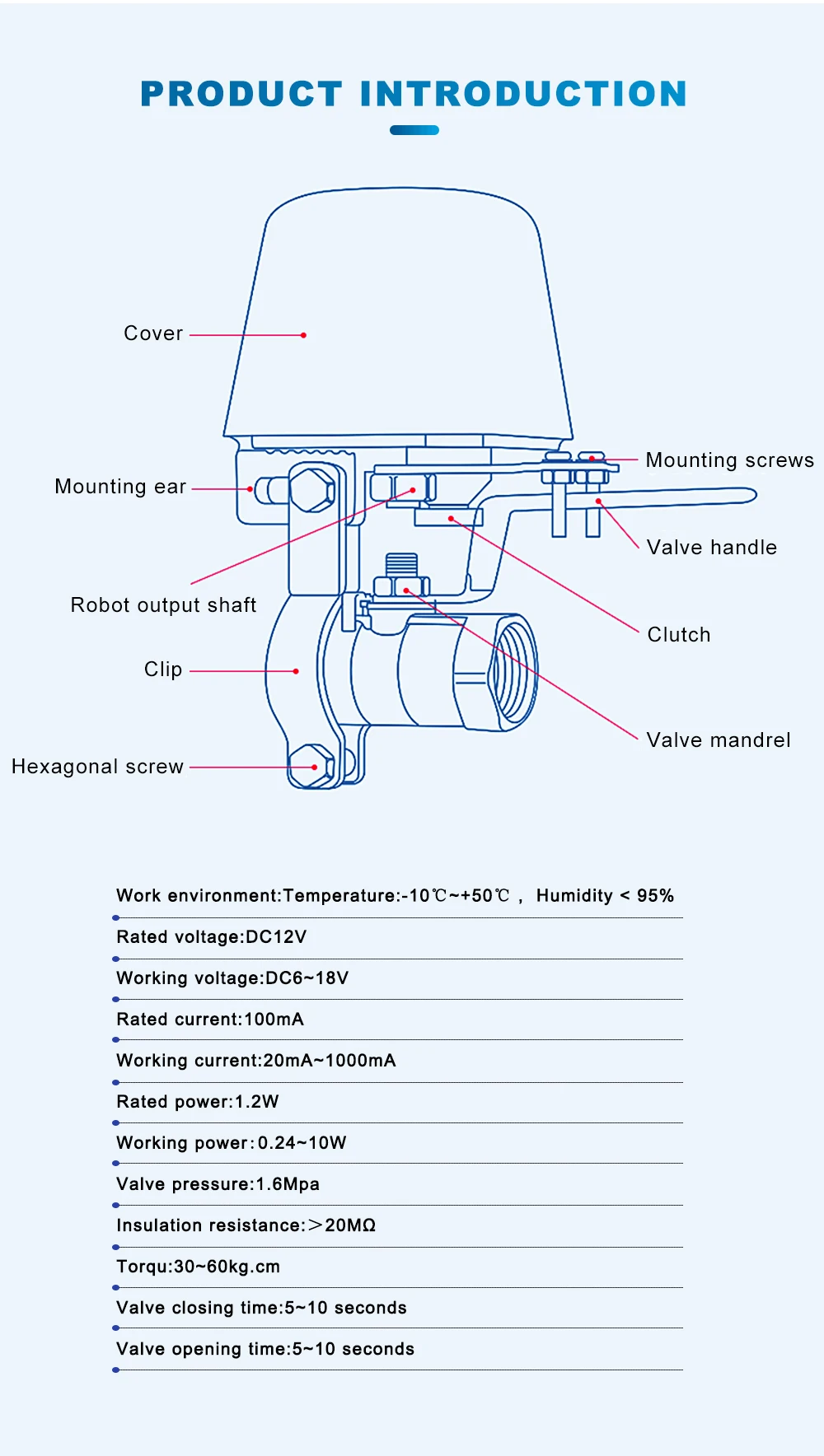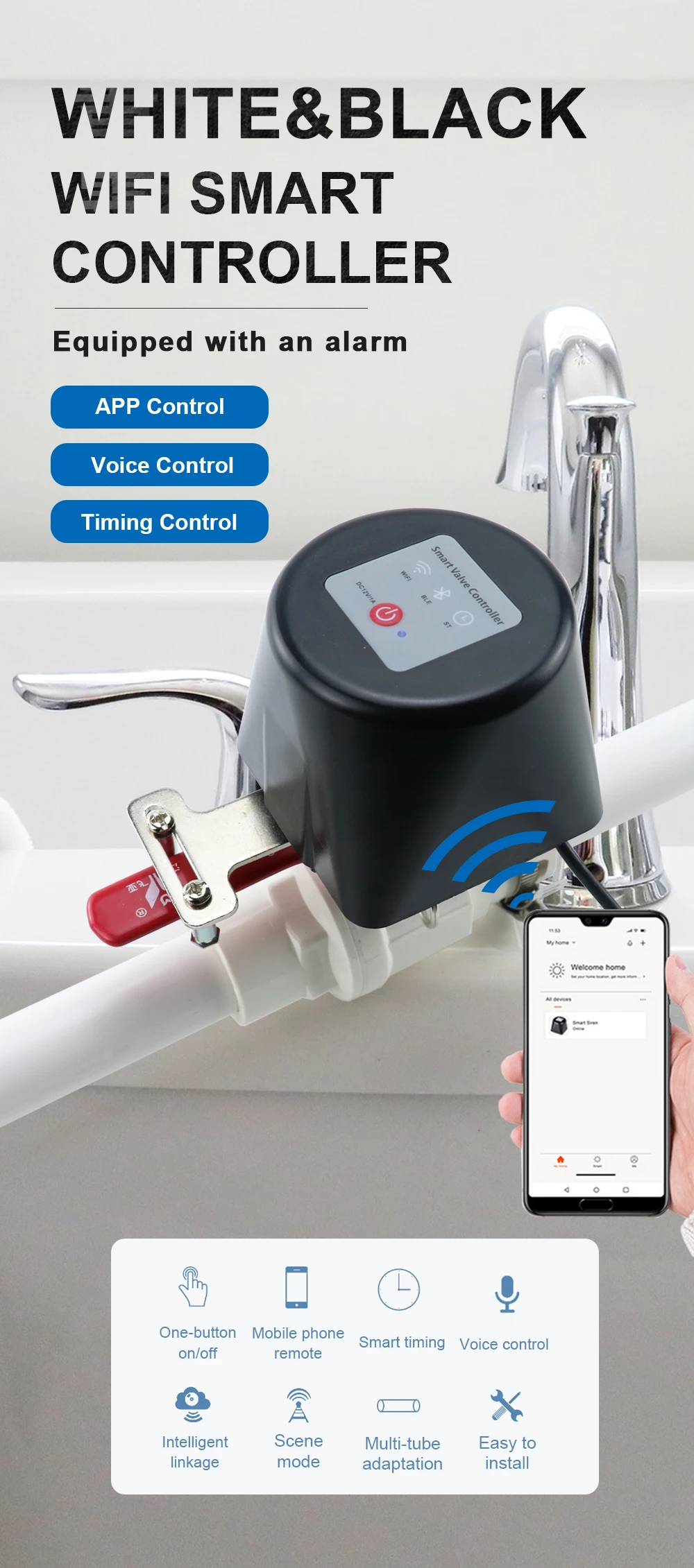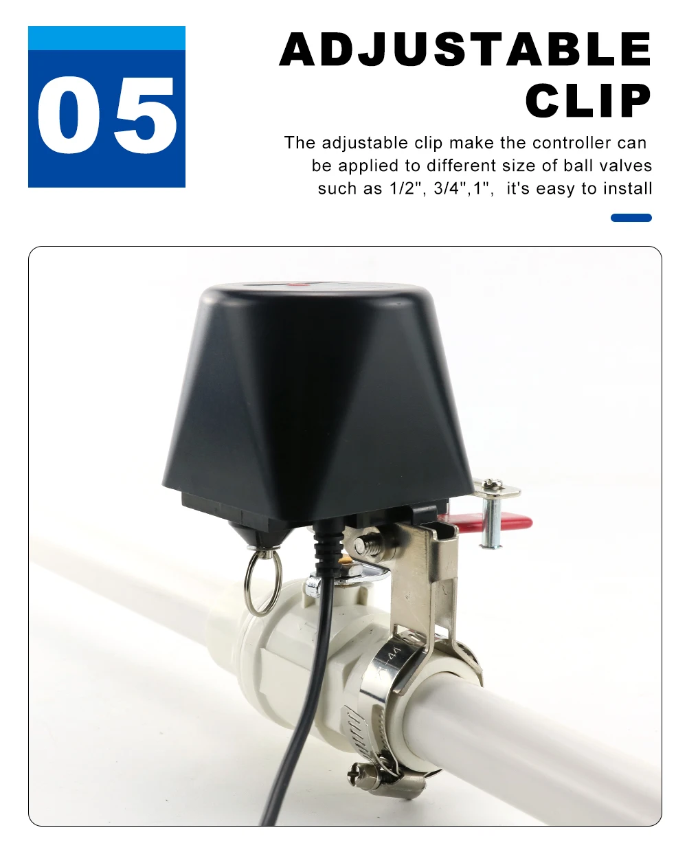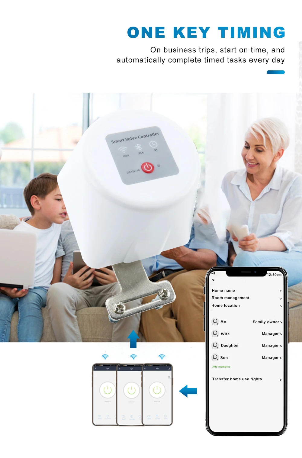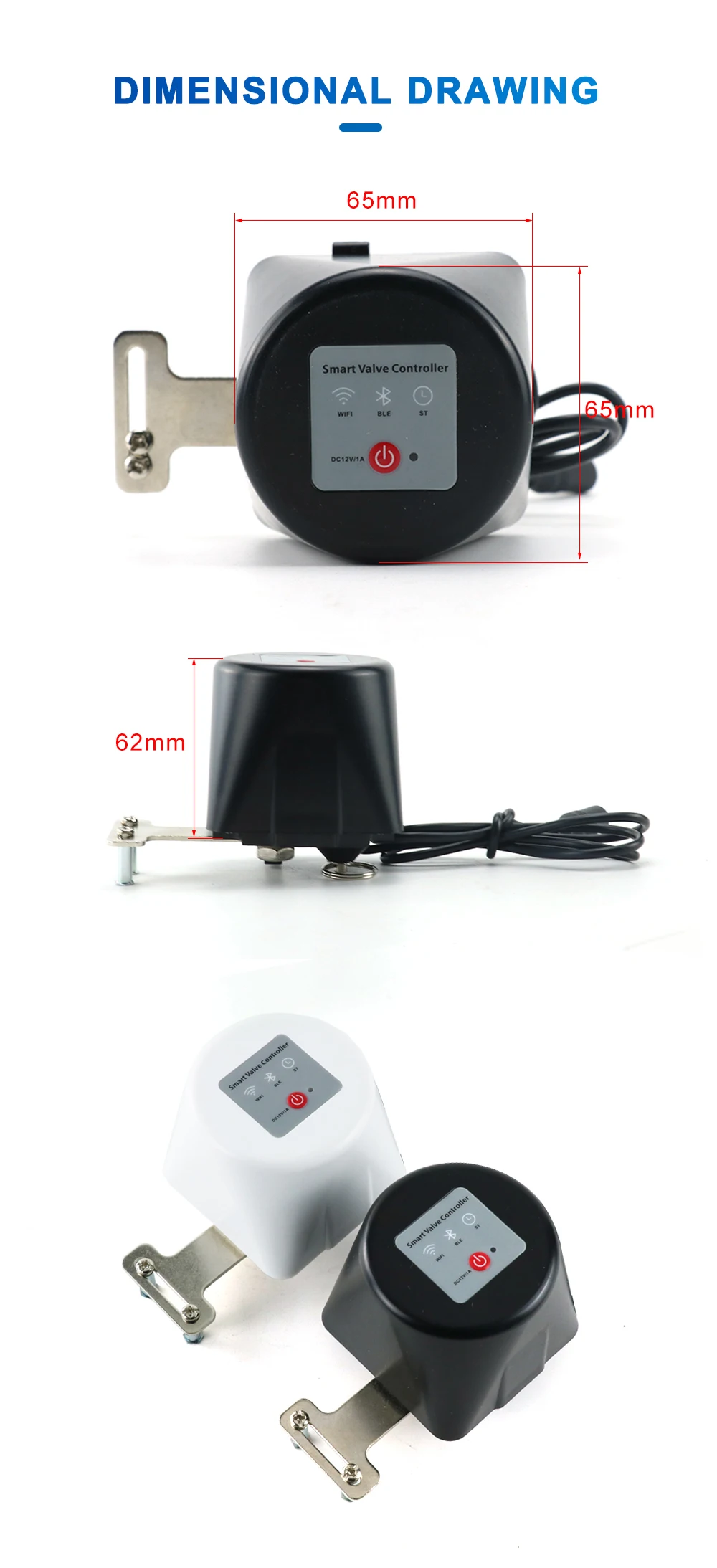 Simply add this smart valve controller to your water valve or gas shutoff valve, you can simple control the water supply or turn off gas valve from anywhere at any time with your smartphone, using free Smart Life app.